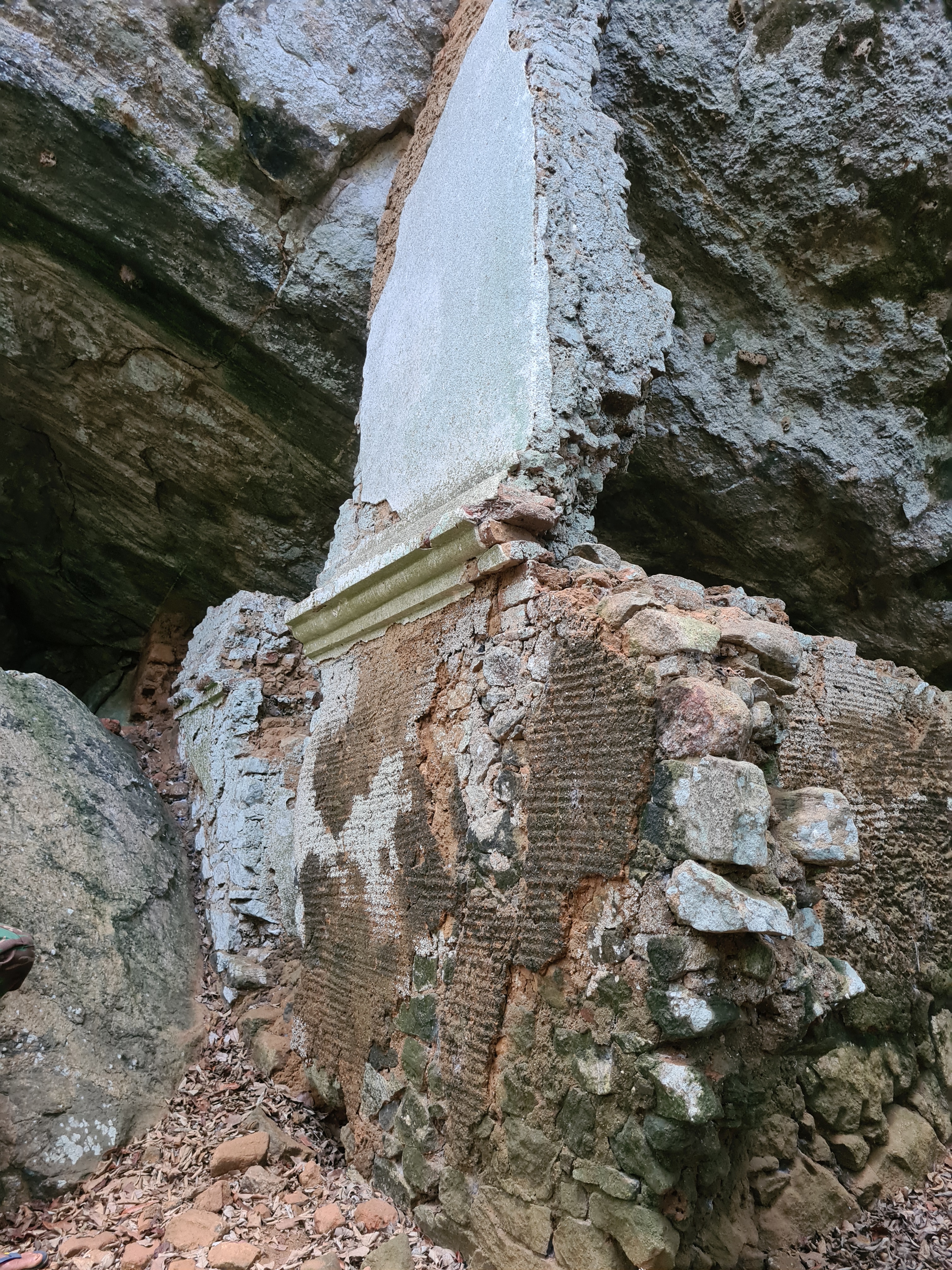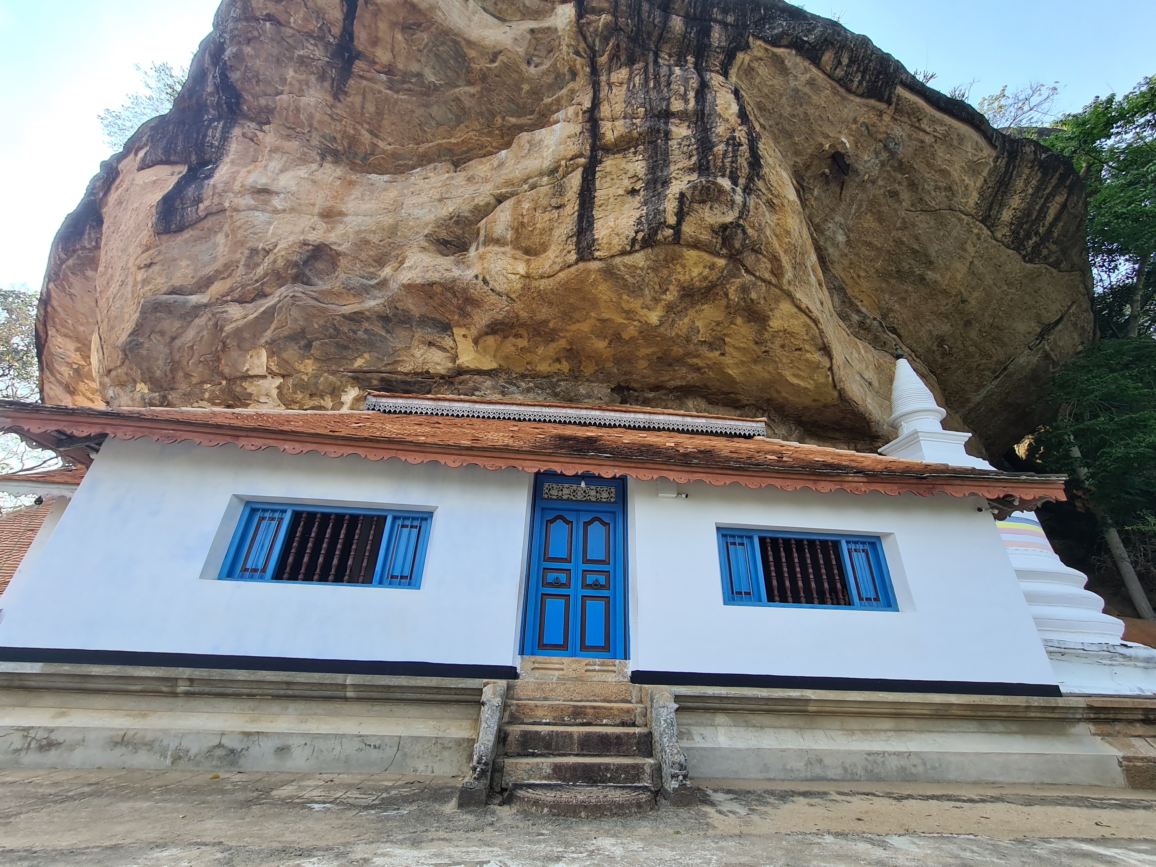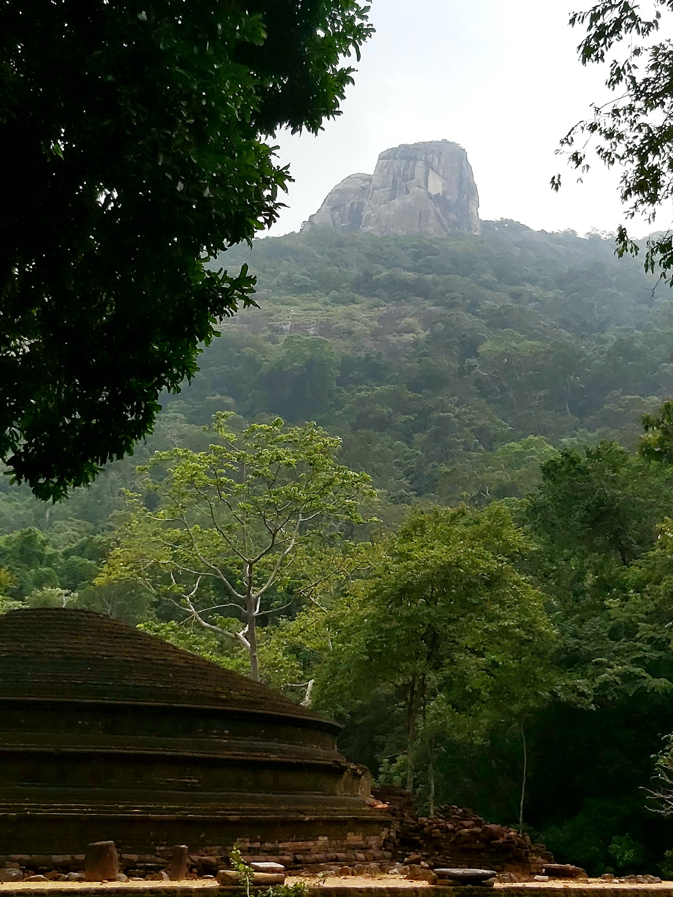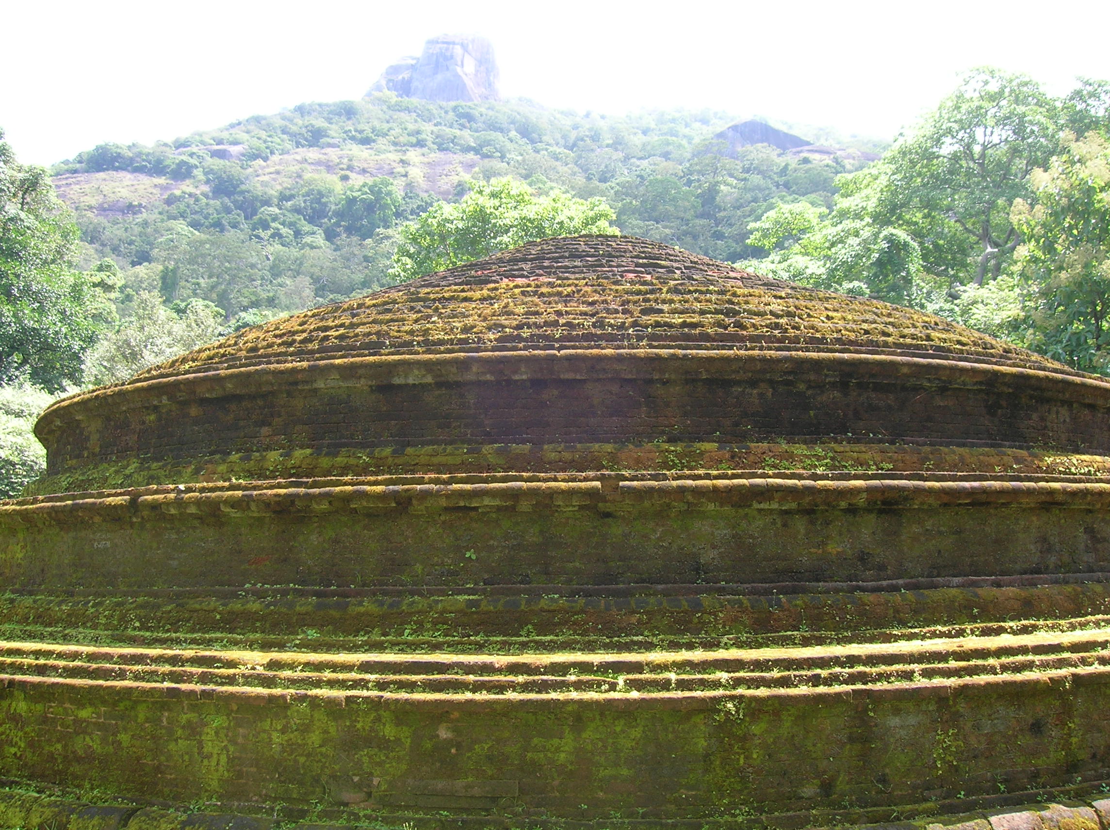 The mountain is littered with caves and a climb to the top, which requires special clearance, one can see remains of ancient stair ways carved into the rock. At the summit is a ruin of a structure, probably a look out point with a very sturdy foundation which is all that remains. The view from the top give a 360 degree view of the surrounding area including a view of Pidurangala, Sigiriya and the stupas at Anuradhapura.