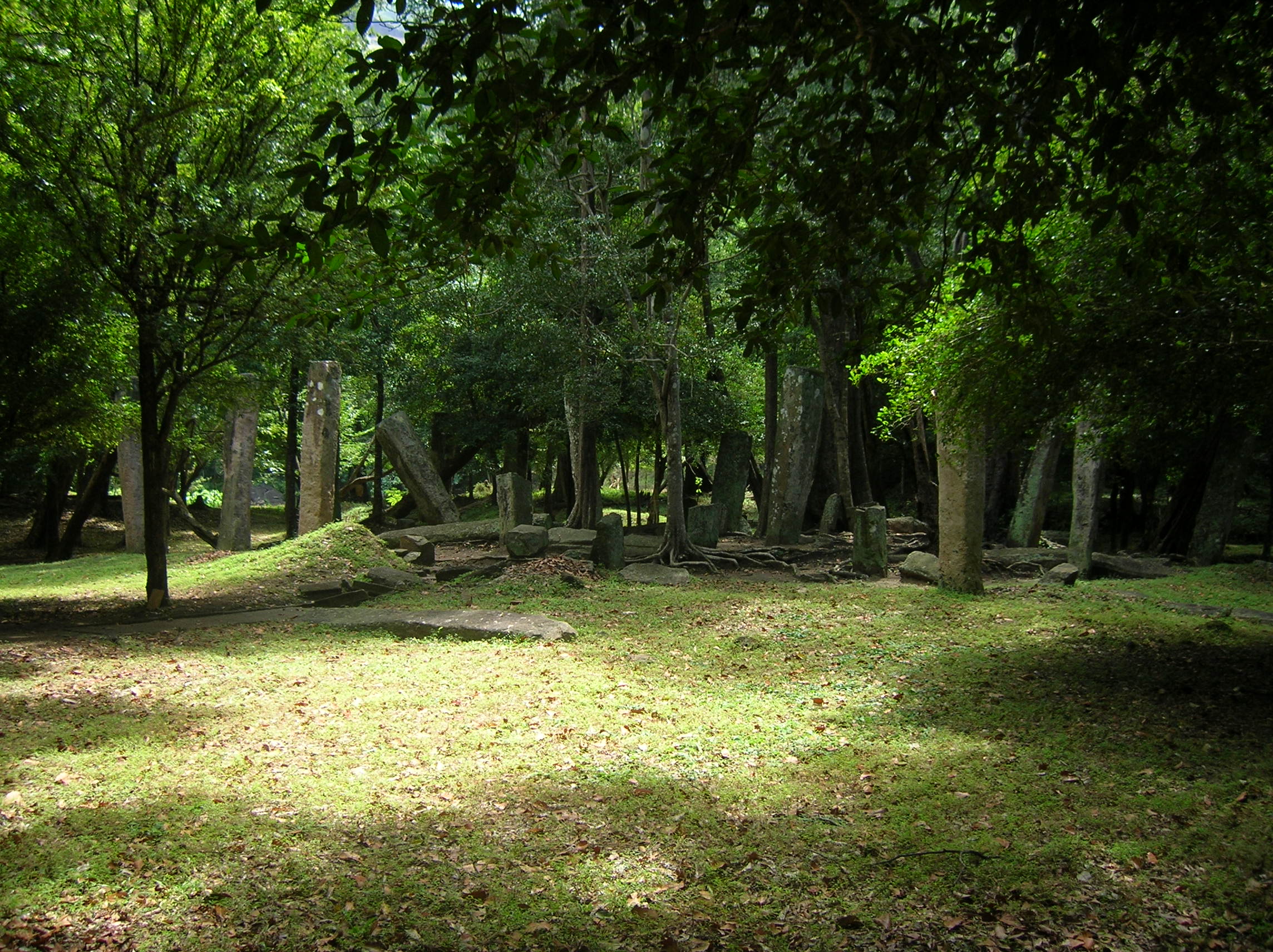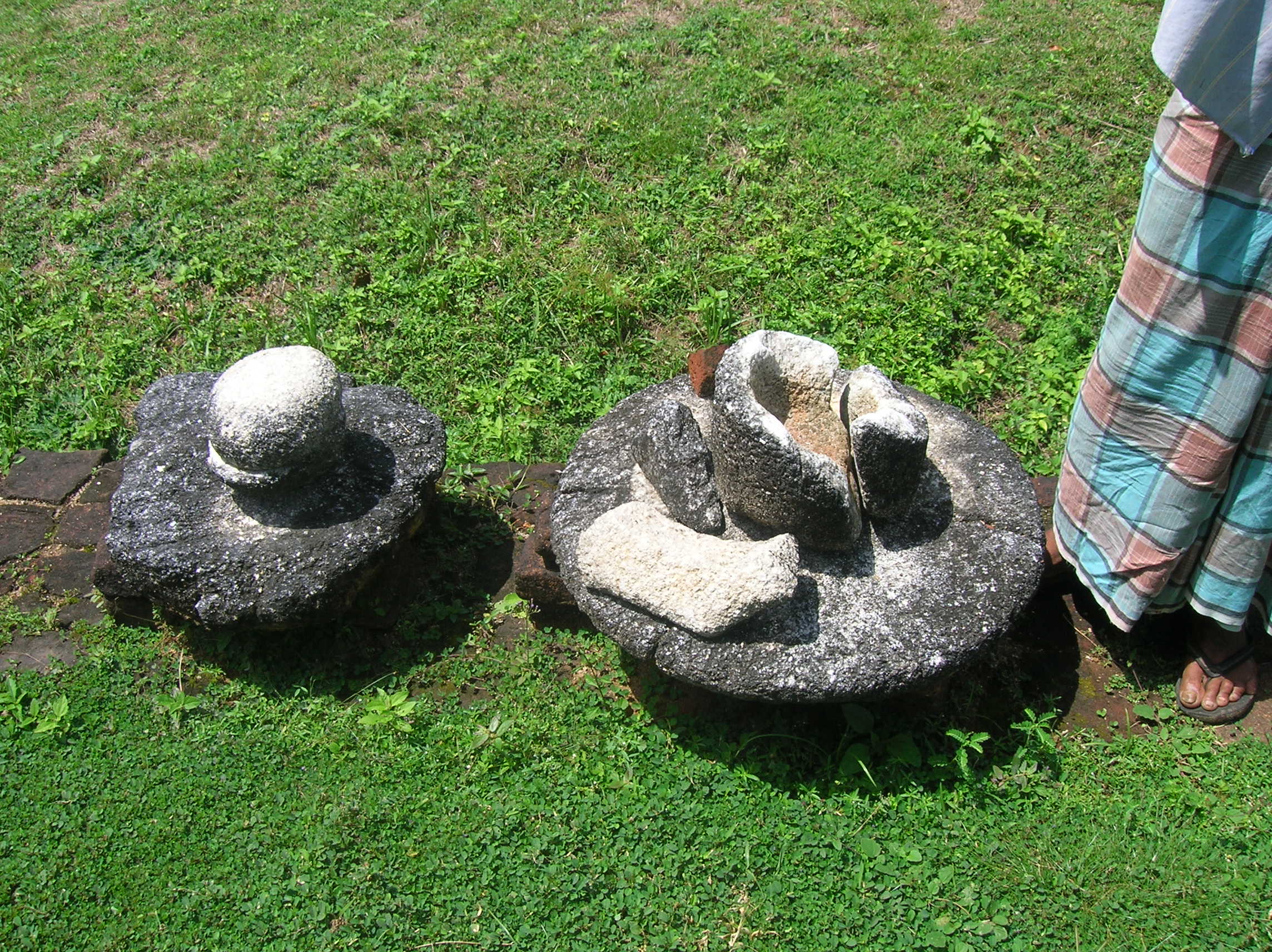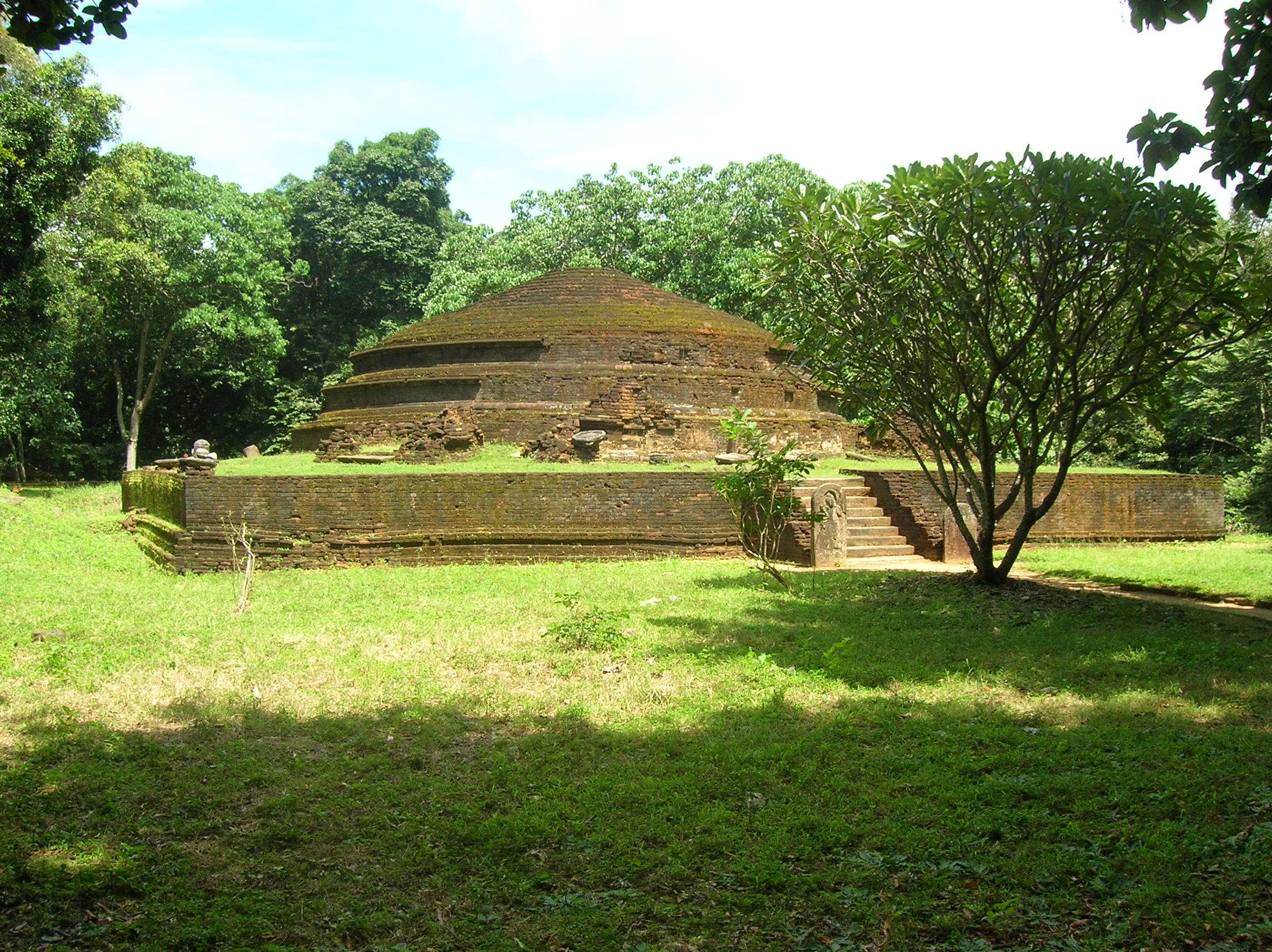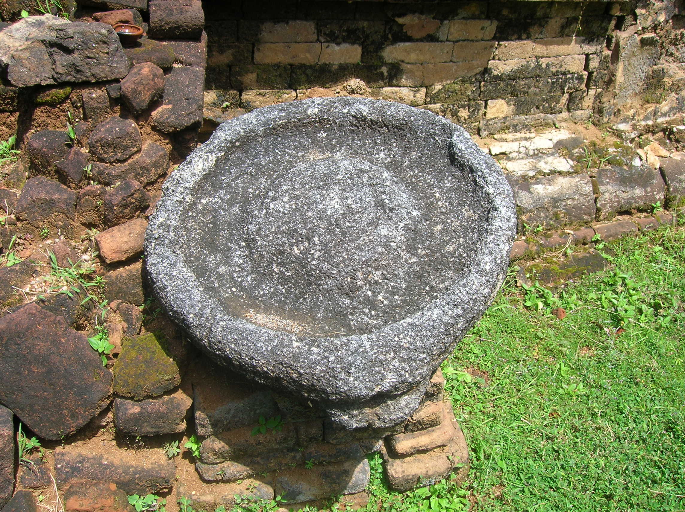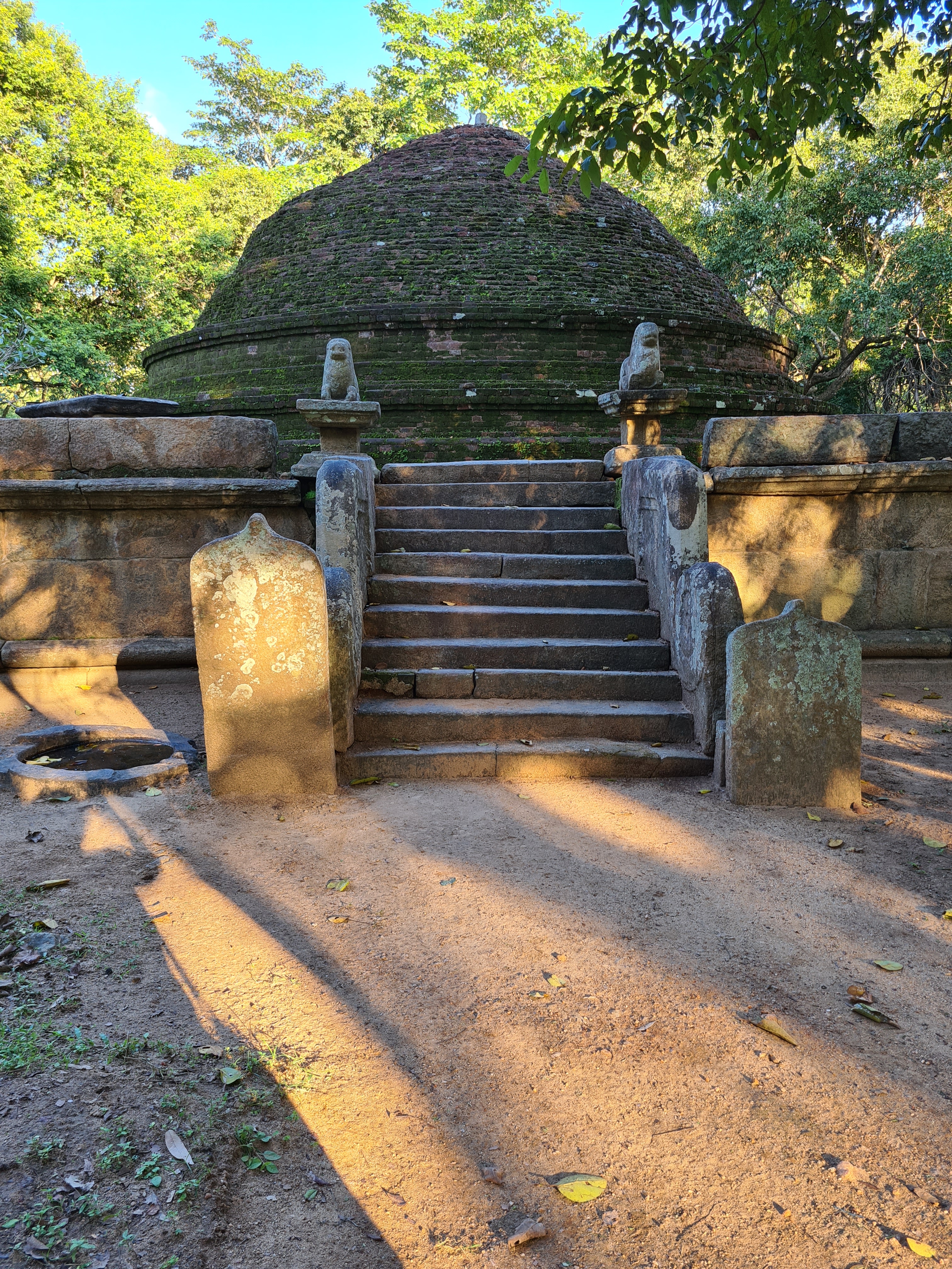 The ruins currently under restoration is thought to be that of a monastic retreat. At the start of the current trail is a gigantic man made pond thought to be the largest in Asia if not the world. Encompassing an area of 2.5 acres would have been a sight to see in its time. Currently this has been partly restored. Further down the trail, one is treated to exquisite stair ways the quality of pricision even todays technology would be hard pressed to deliver. The sharp edged stones and interlocking assembly speaks of a advanced technology lost to mankind now. The stone bridge which is to date sturdy as when it was set is engineering feat to behold. The Meandering stone laid path way up the hill is easy to climb due to gentle slope maintained. The path way has resting places at intervals to rest any weary feet. It is set in a circular fashion so that the monks can continue their walking meditation whilst resting and one such resting place has had water filled foot bath to soak ones feet. The carving of the stones in circular fashion is though provoking. The path leads to first of 2 buildings which is thought to have been surrounded by water with elevated floor boards. There are air inlets below the flow boards, which would have had a very cooling effect when air blows over the water. The area around these buildings and path way is littered with ruins of many other buildings. Off the path way is a man made waterfall, functioning even today. Made by blocking a water way with large carved stone slabs and the area below the water fall fashioned such that one could sit under the falling water or meditate. Stone steps carved in the rock enables one to climb to the sitting platform. The back of the waterfall and the surrounding is properly walled up to create a neat bathing pool.