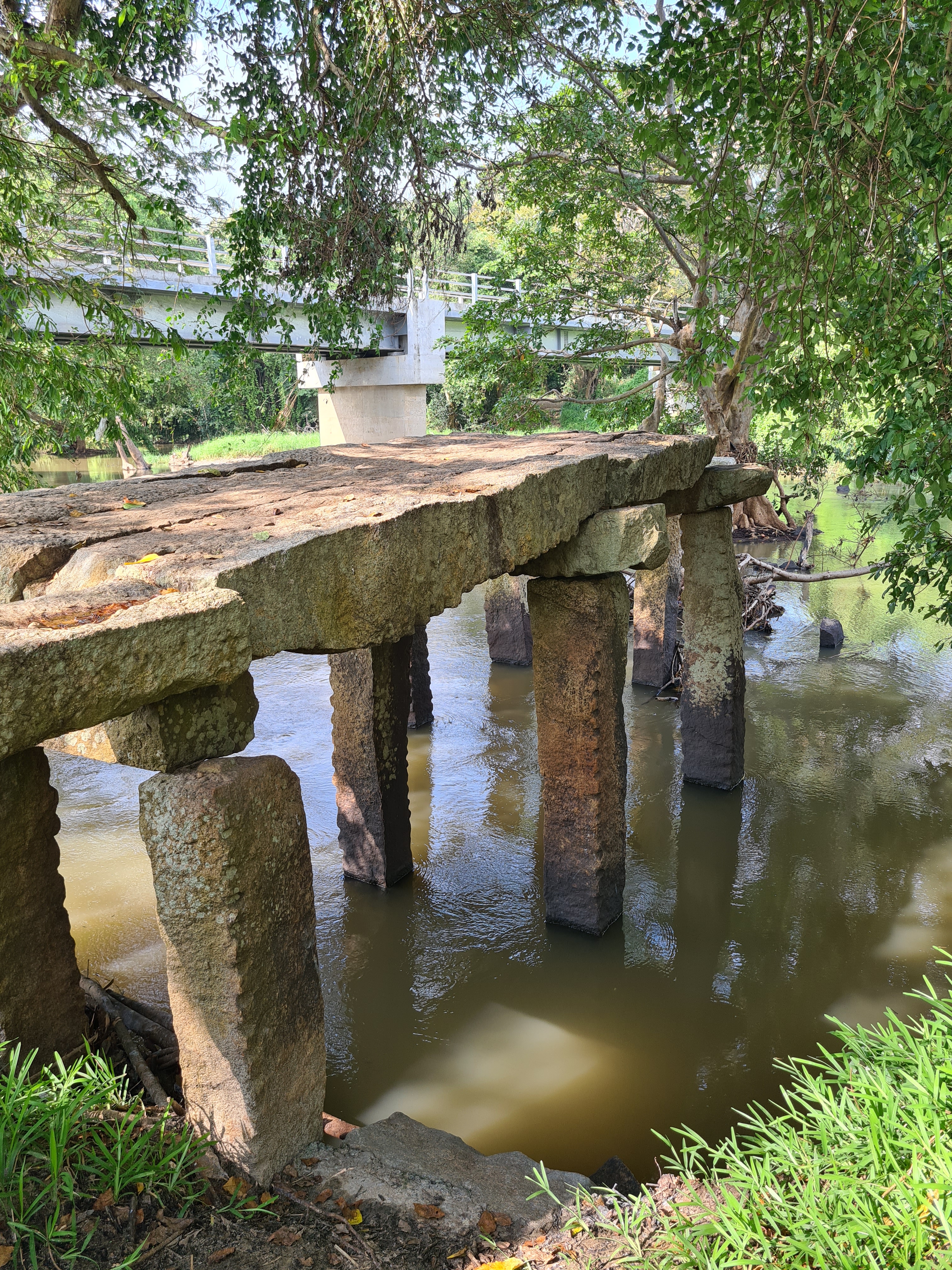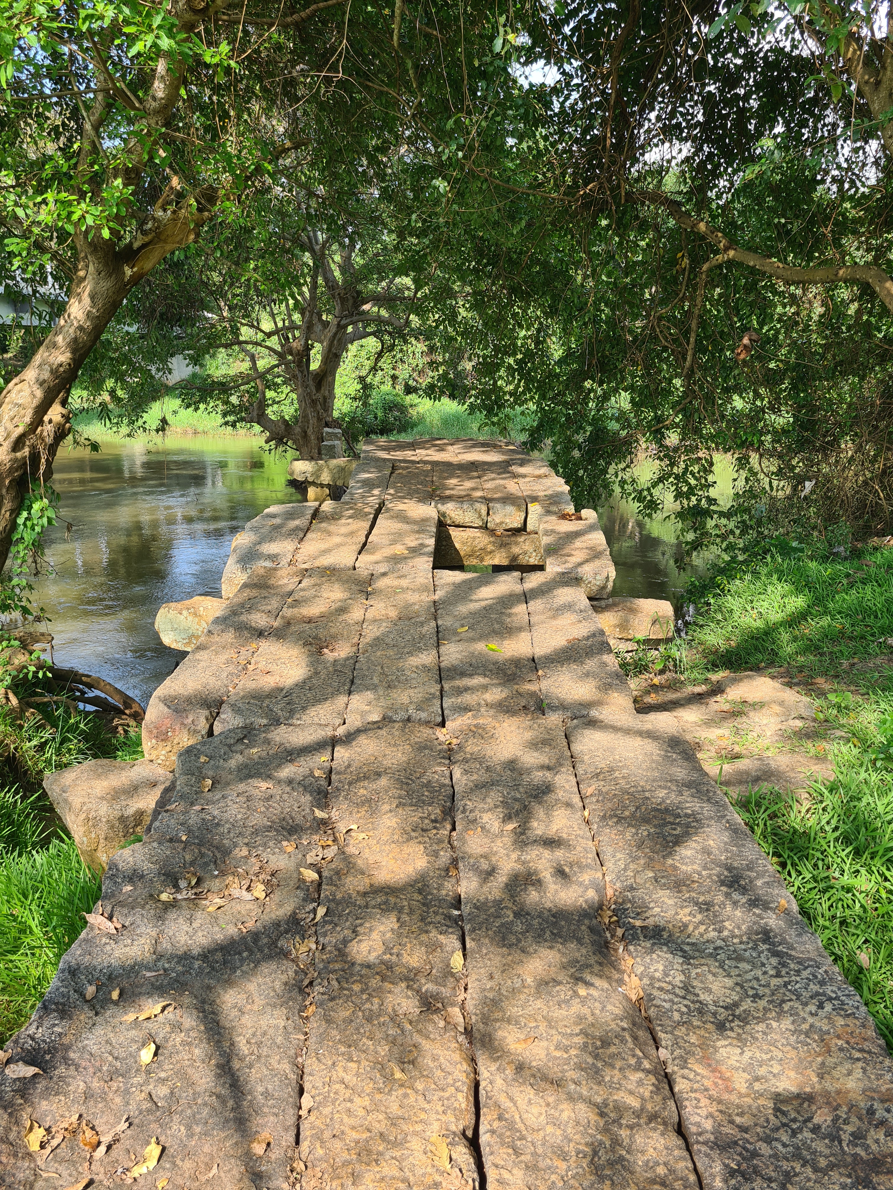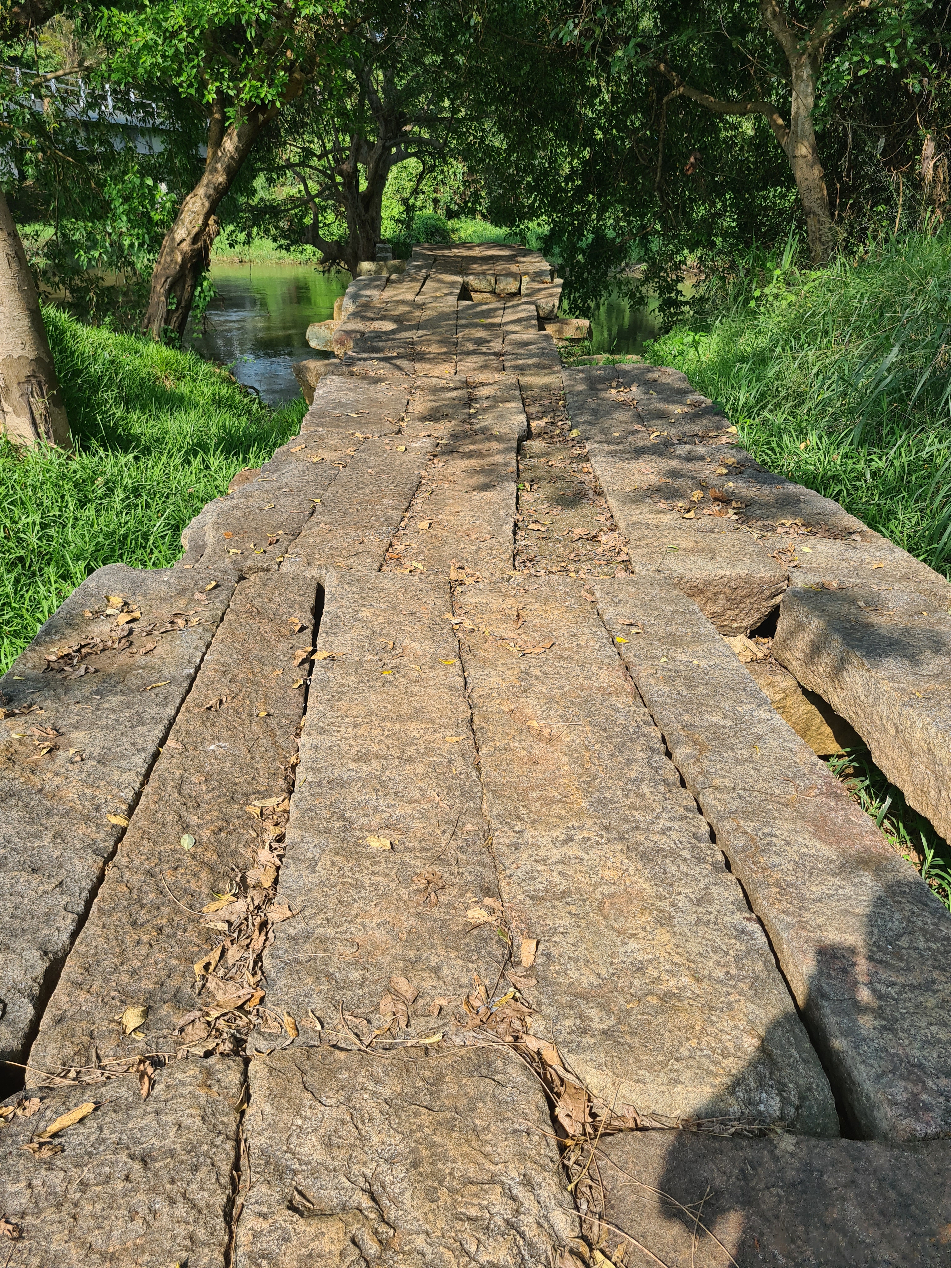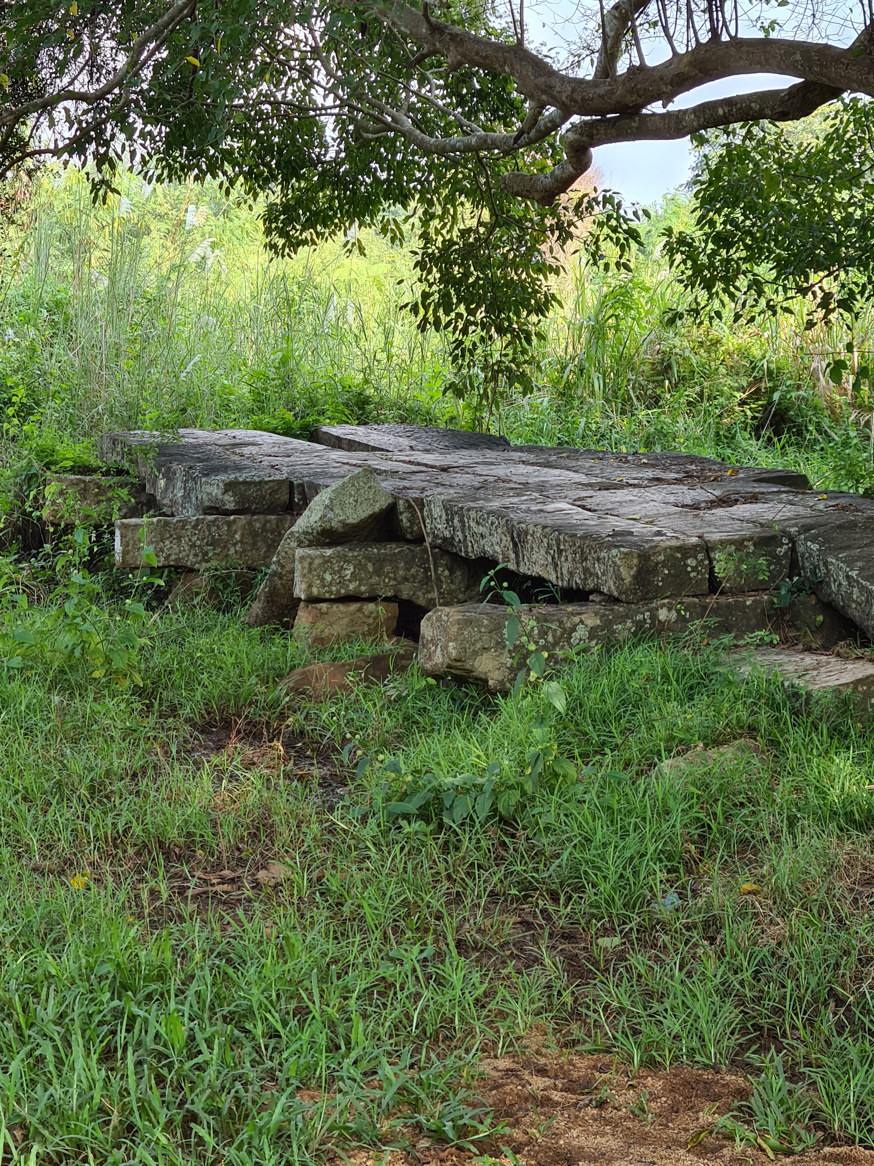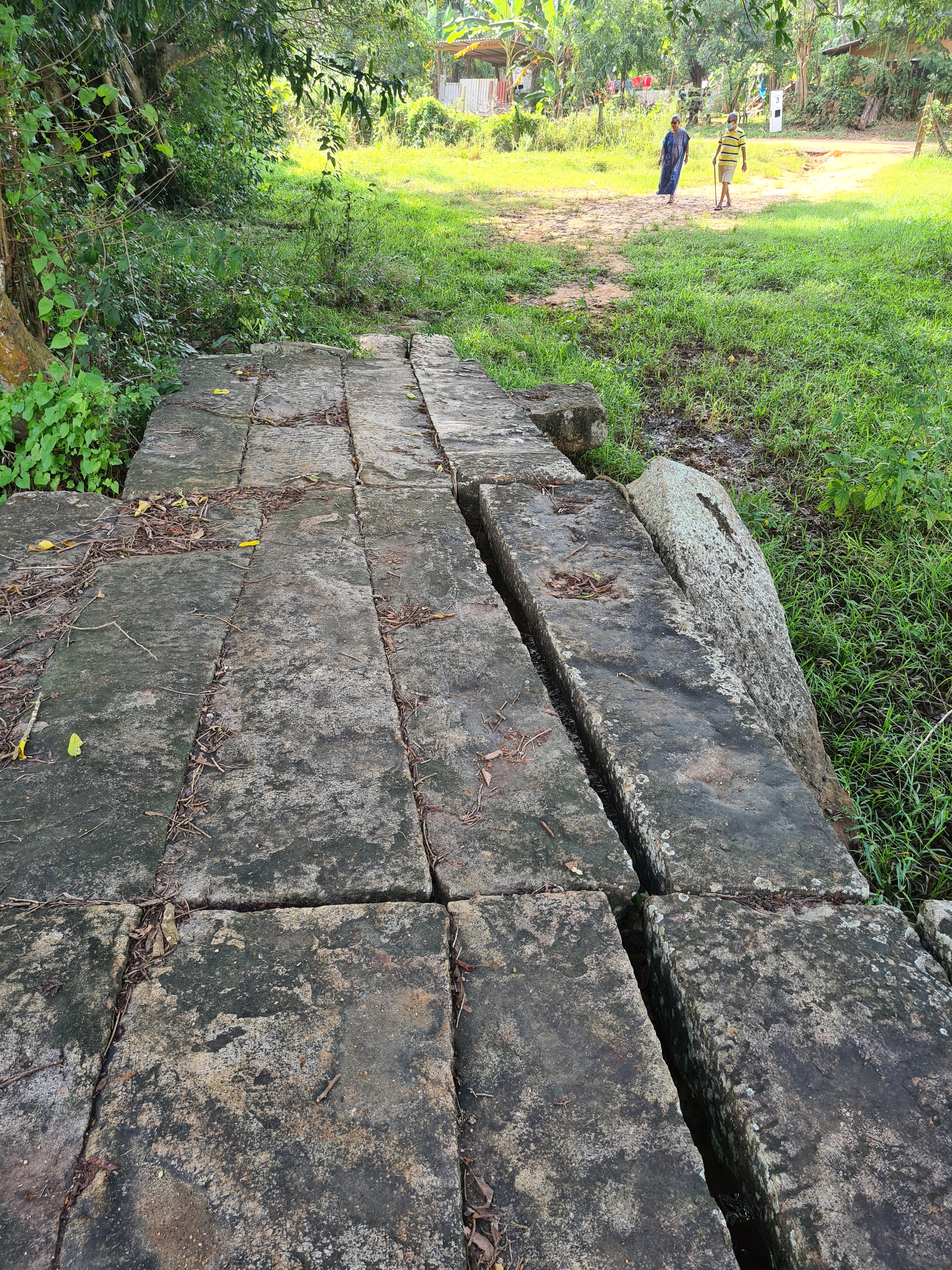 The ruins currently under restoration is thought to be that of a monastic retreat. At the start of the current trail is a gigantic man made pond thought to be the largest in Asia if not the world. Encompassing an area of 2.5 acres would have been a sight to see in its time. Currently this has been partly restored. Further down the trail, one is treated to exquisite stair ways the quality of pricision even todays technology would be hard pressed to deliver. The sharp edged stones and interlocking assembly speaks of a advanced technology lost to mankind now. The stone bridge which is to date sturdy as when it was set is engineering feat to behold. The Meandering stone laid path way up the hill is easy to climb due to gentle slope maintained. The path way has resting places at intervals to rest any weary feet. It is set in a circular fashion so that the monks can continue their walking meditation whilst resting and one such resting place has had water filled foot bath to soak ones feet. The carving of the stones in circular fashion is though provoking. The path leads to first of 2 buildings which is thought to have been surrounded by water with elevated floor boards. There are air inlets below the flow boards, which would have had a very cooling effect when air blows over the water. The area around these buildings and path way is littered with ruins of many other buildings. Off the path way is a man made waterfall, functioning even today. Made by blocking a water way with large carved stone slabs and the area below the water fall fashioned such that one could sit under the falling water or meditate. Stone steps carved in the rock enables one to climb to the sitting platform. The back of the waterfall and the surrounding is properly walled up to create a neat bathing pool.