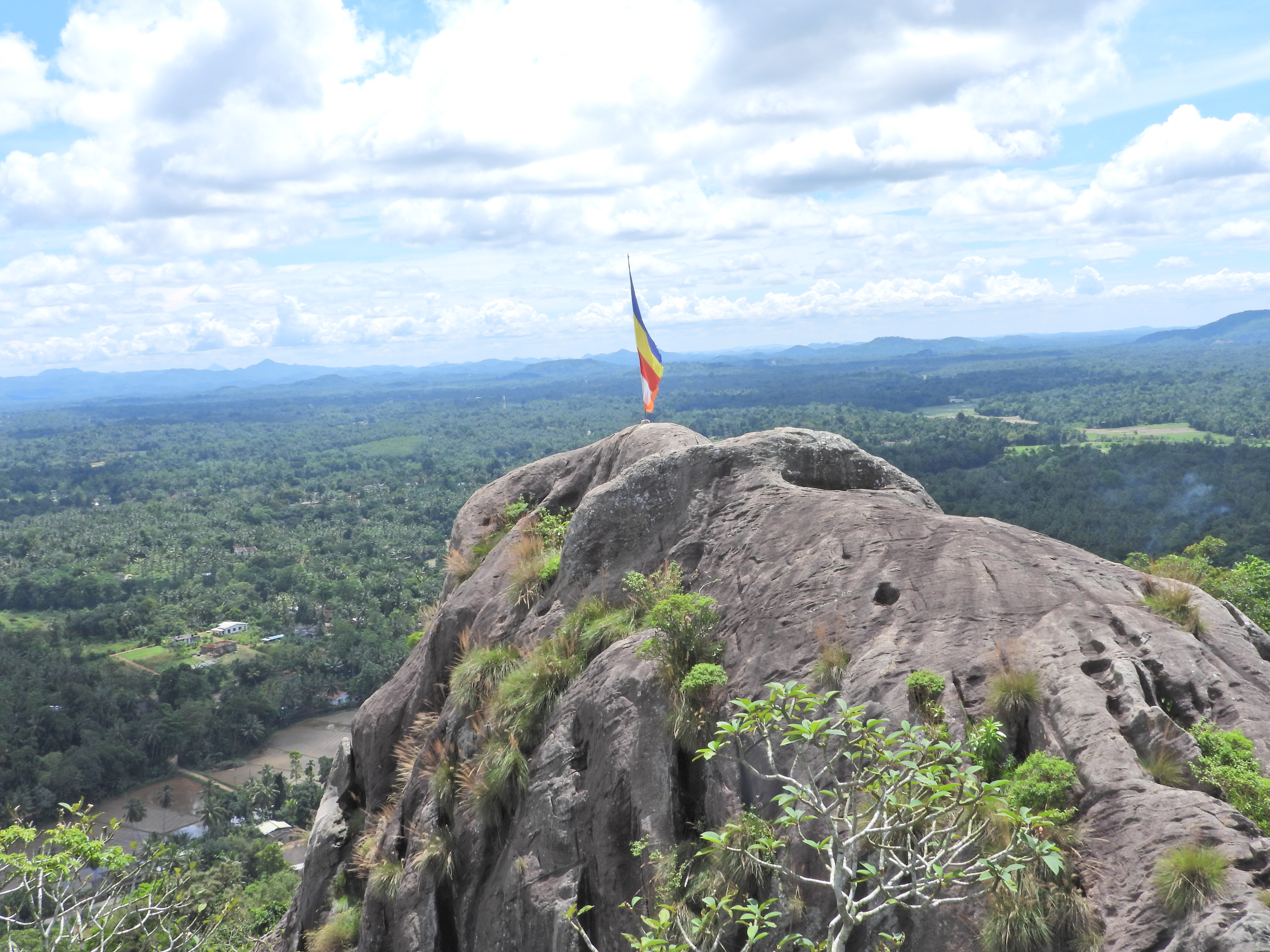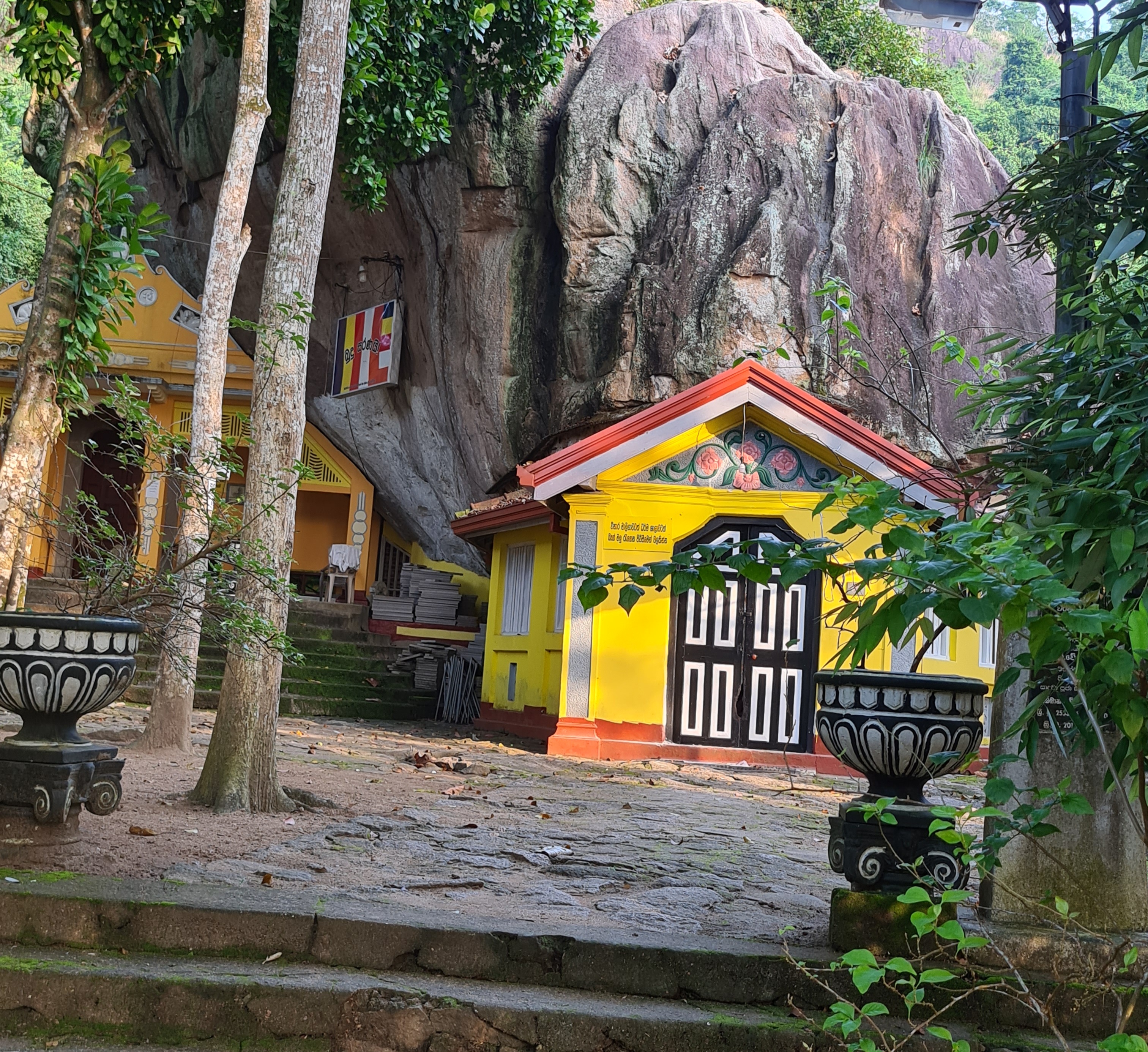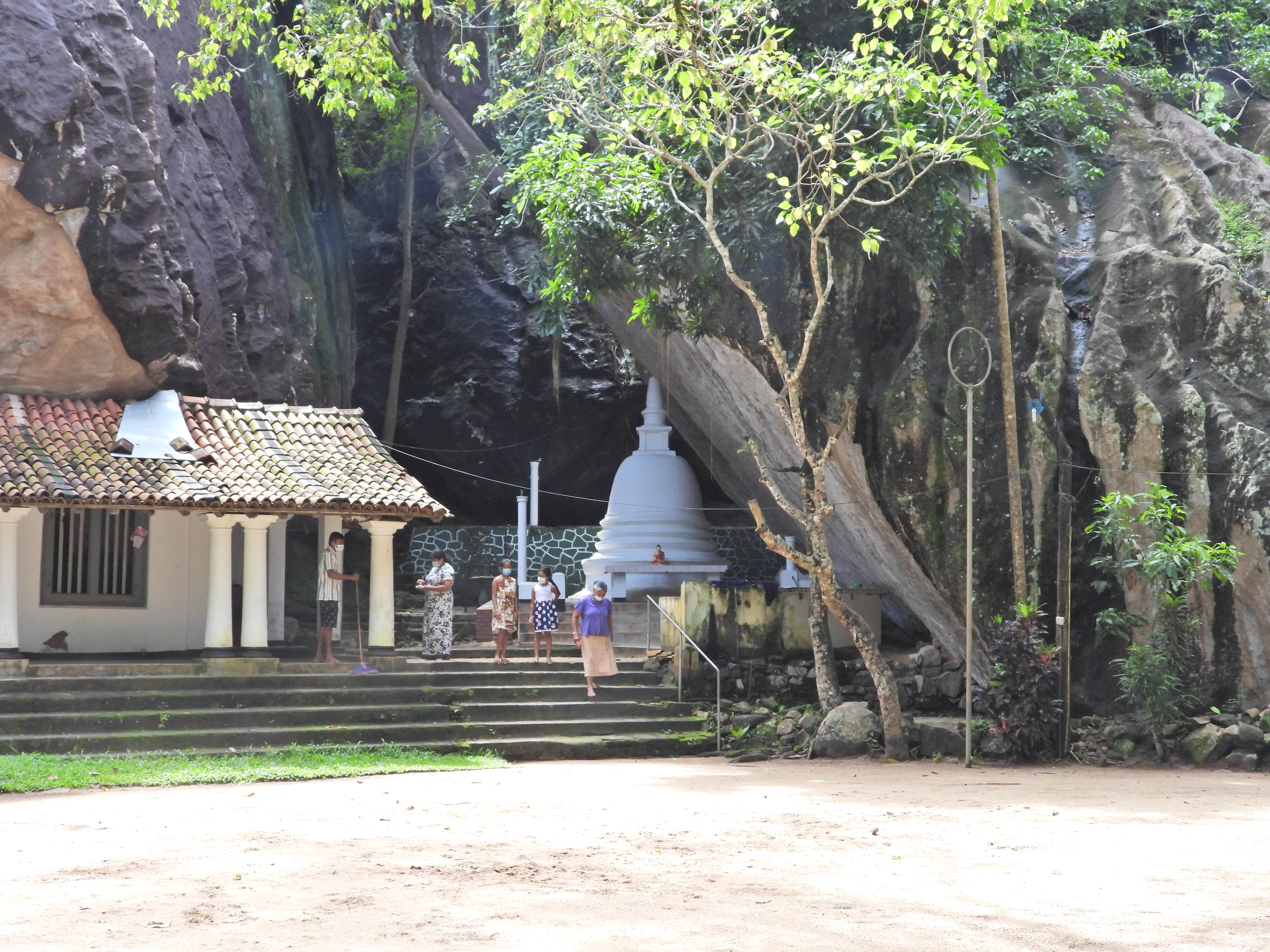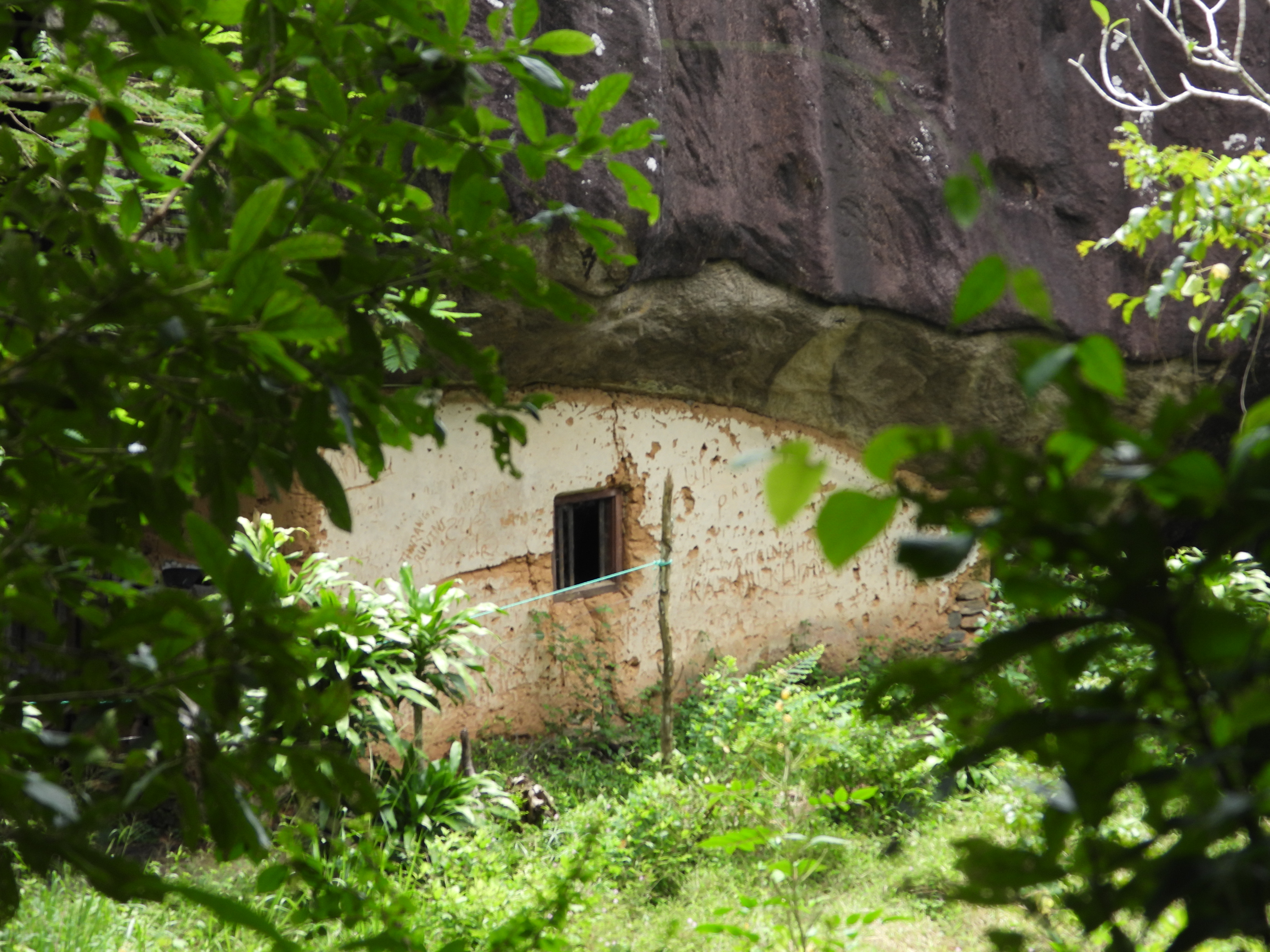 The place is on the mountain opposite the Alawala Pothgul Len Raja Maha Vehera, a quaint little cave temple. The road to the caves is the same as to the temple. The approach is motorable upto about 500m of the temple. The recently erected stairway leading to the caves is about 100ms past the sign post for the temple. There is no proper place to park, but one can leave the vehicle near the turn off to the temple. Its a easy climb upto the cave.