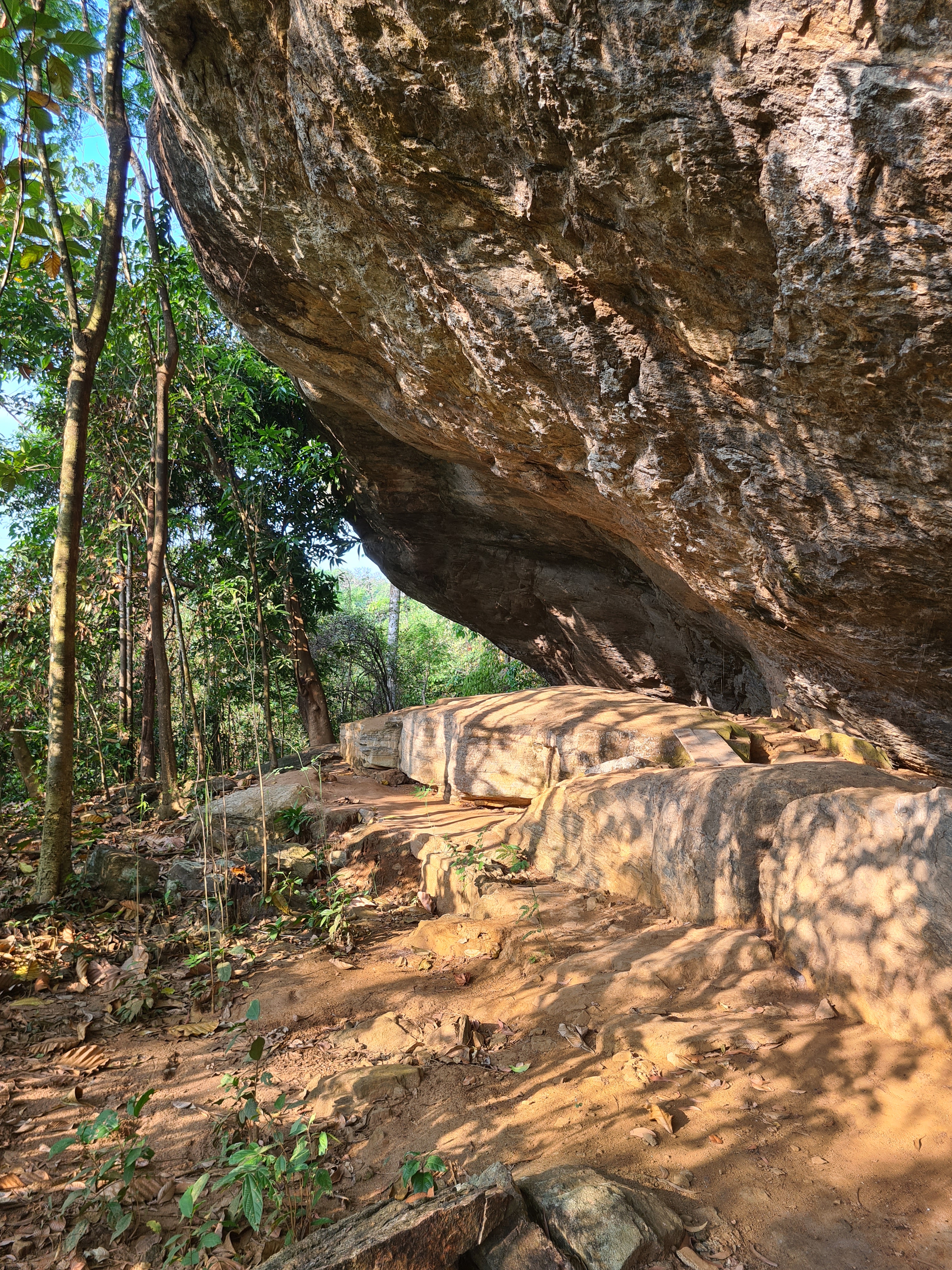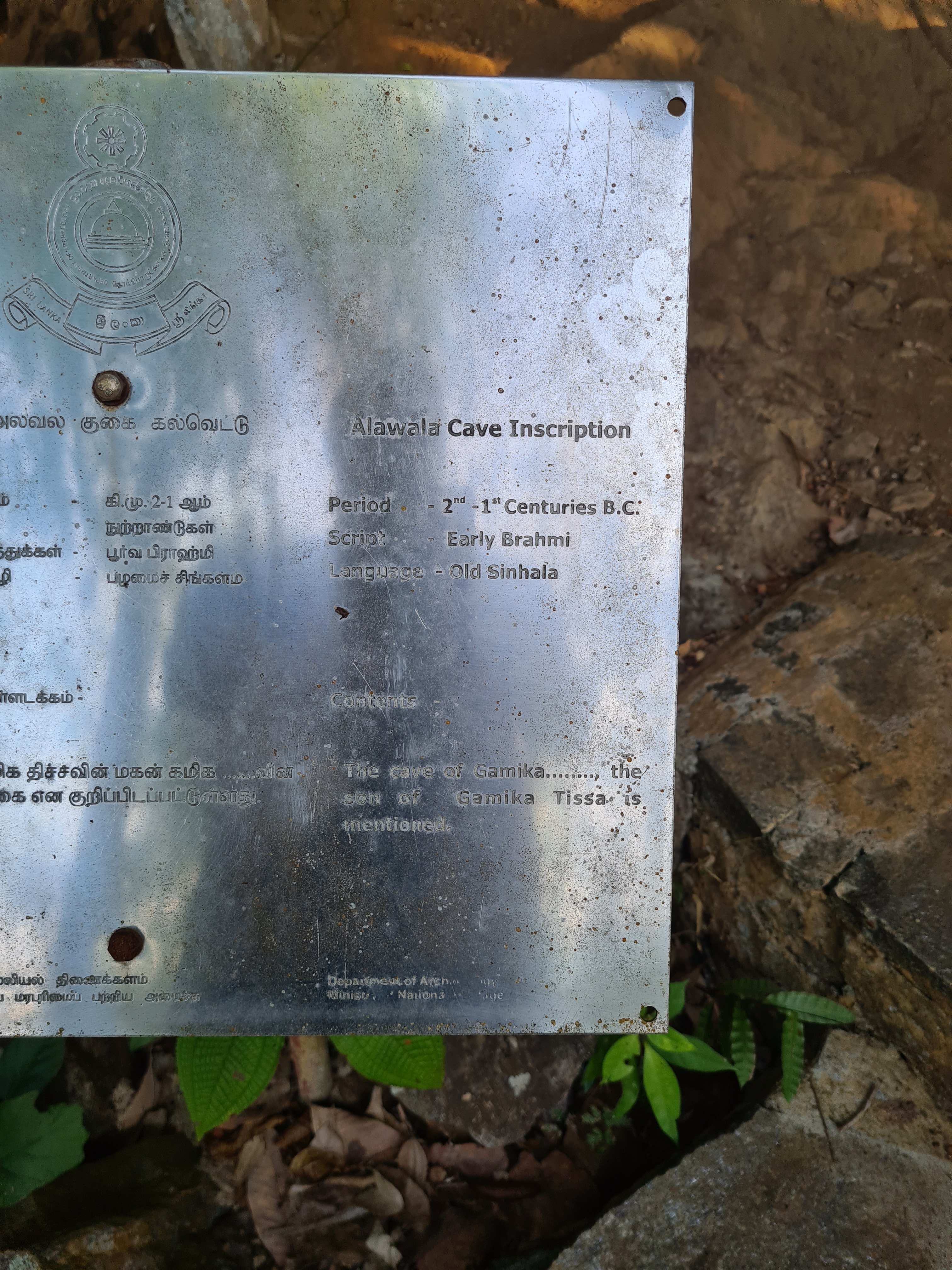 The cave has a drip ledge carved into part of the cave. Inscription from the 2-3rd century BC indicates that the cave belonged to one Gamini, son of Gamini Tissa.