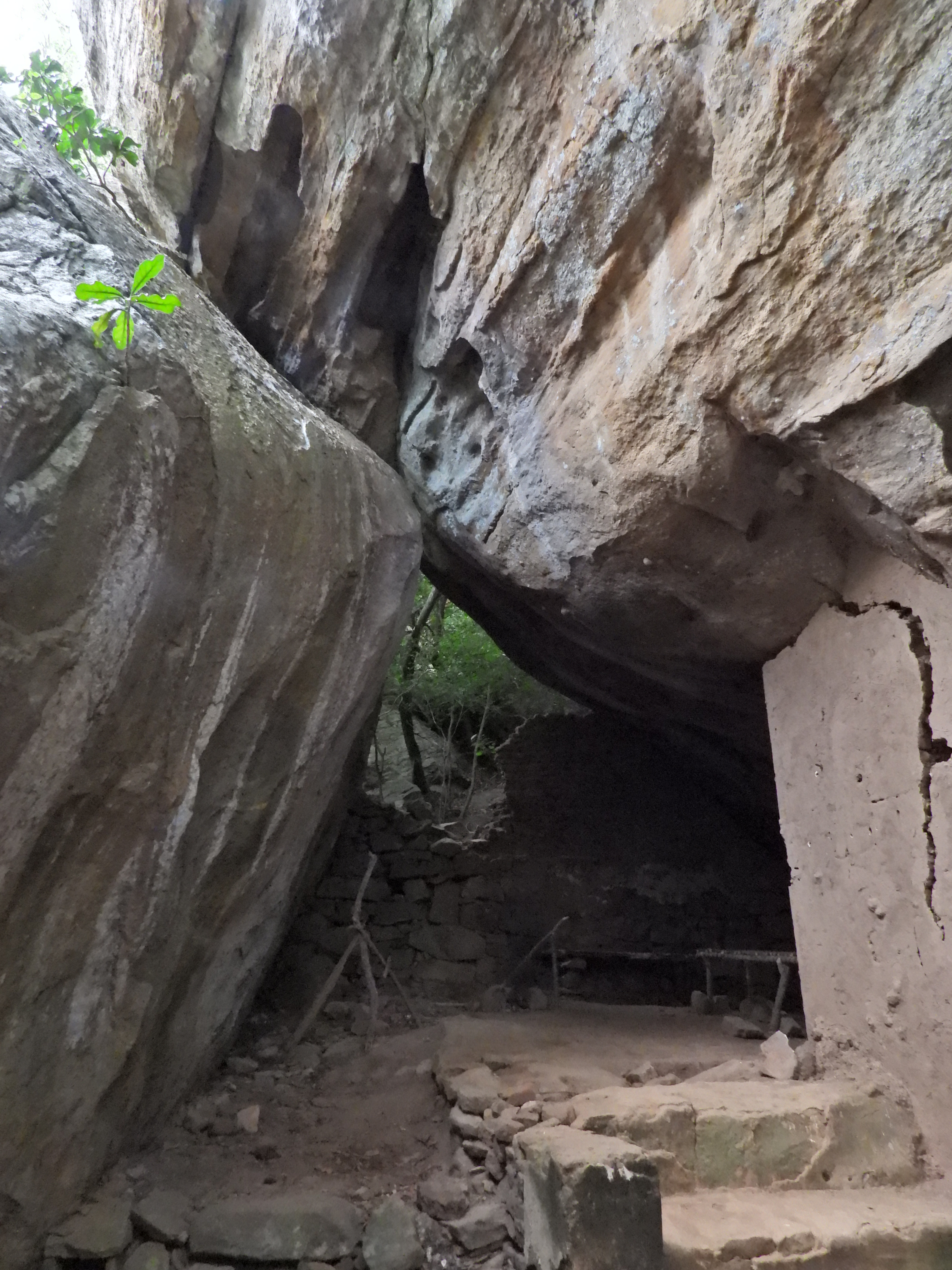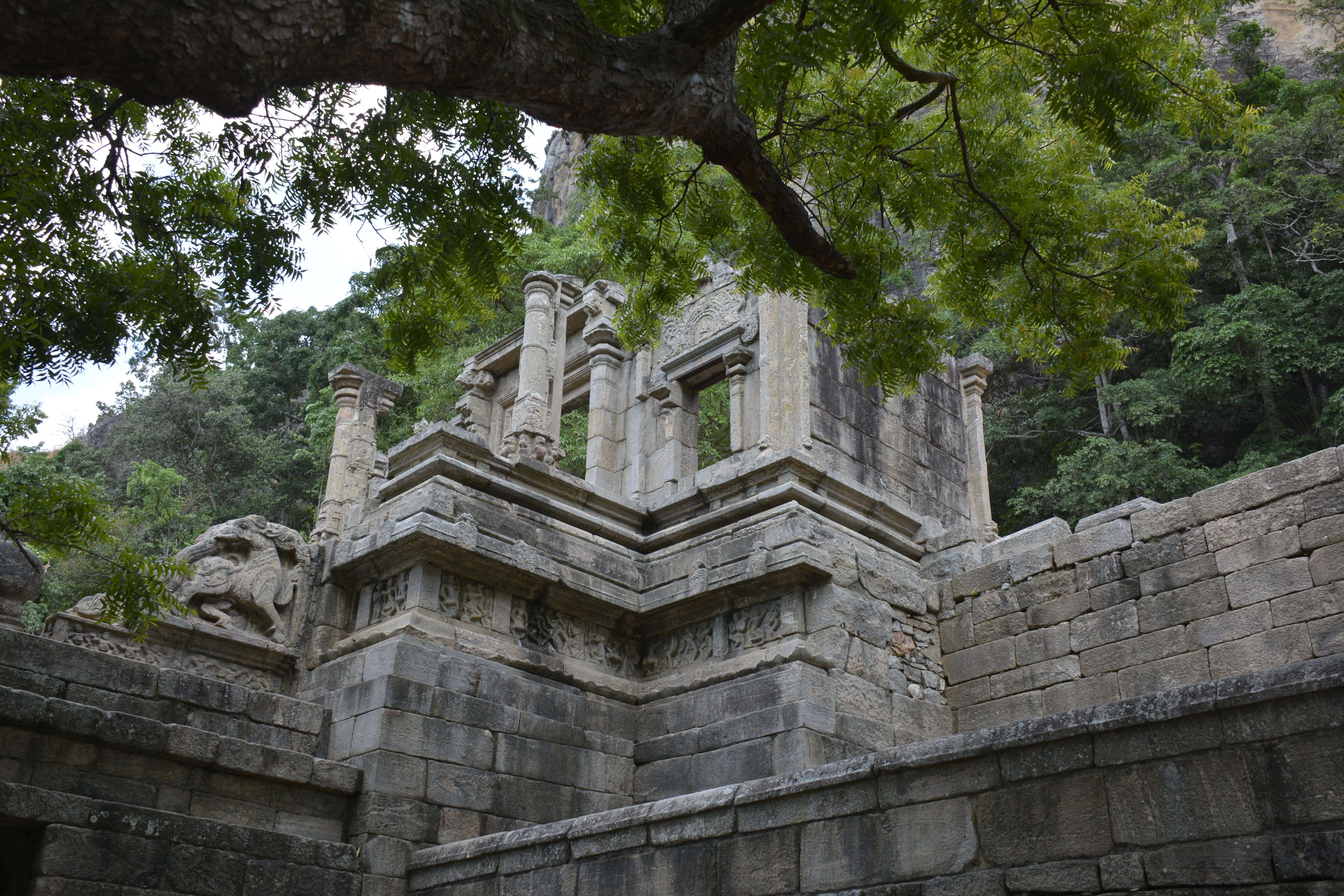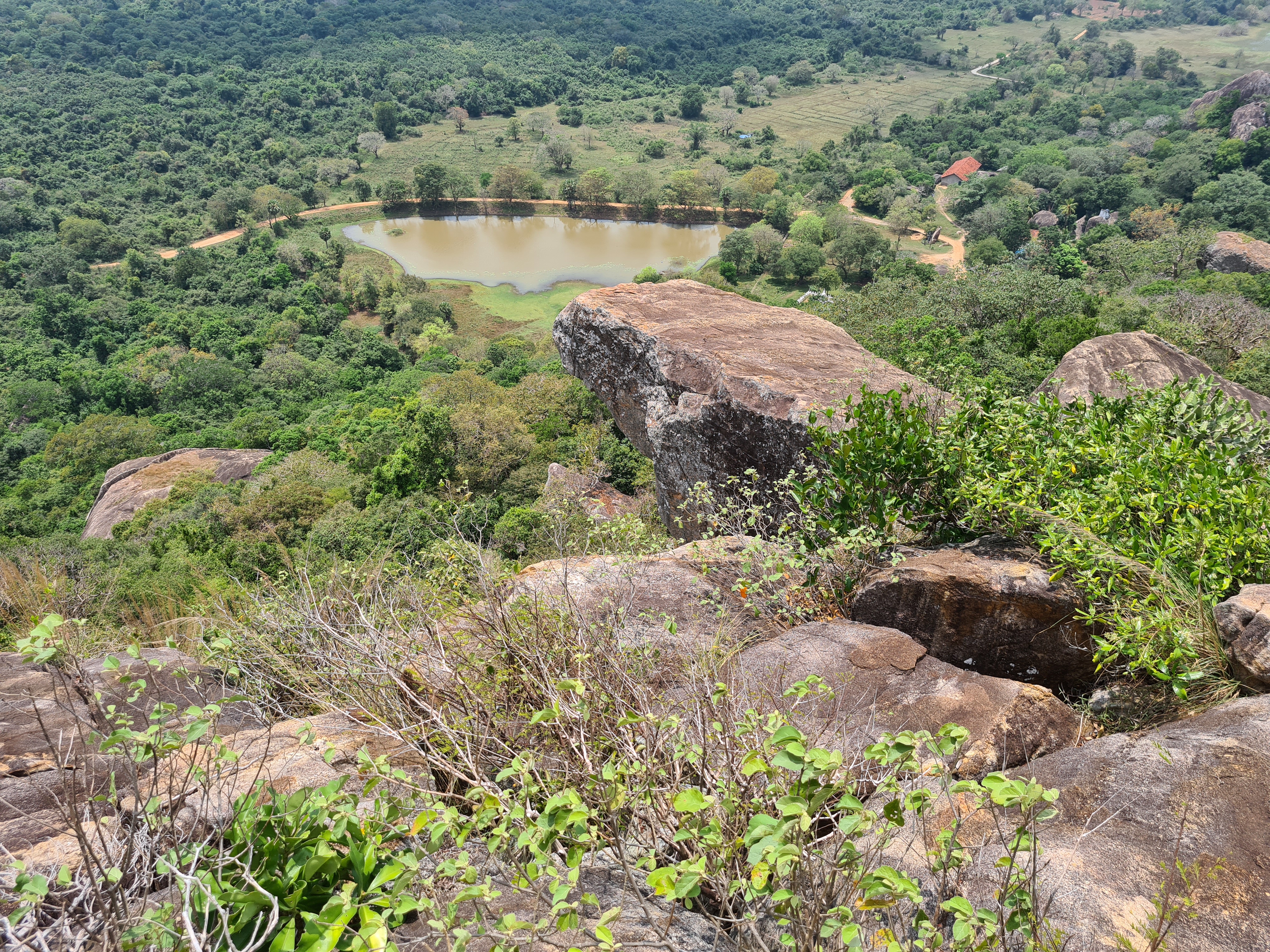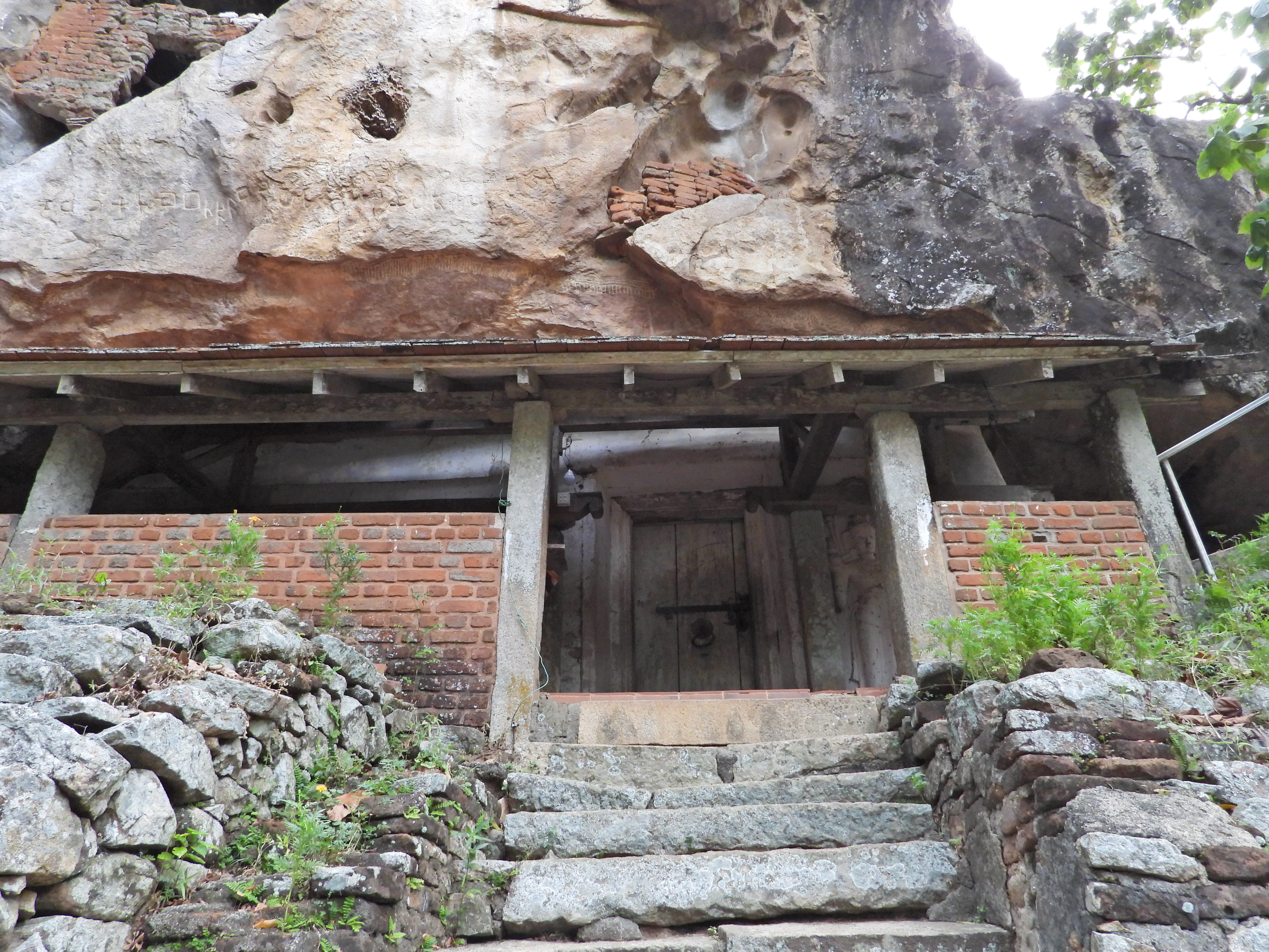 The site is a sprawling Buddhist community with its own lake for water fed by numerous water streams. The ruins here is reminiscent of those in Ritigala and even Anuradhapura or pollonaruwa. The site is better preseved than most othe places. The cave dwellings still has its coloured plaster on its walls. The stone architecture used in the caves reminds one of those found in Kaludiya Pokuna in Kandalama. The stone door frames, stairways with ballustrads still in place is fascinating. The stone bowls used to collect water brought vi’s stone conduits is seen only here. Another aspect thats seen here is that most caves have been used by lay female devotees.