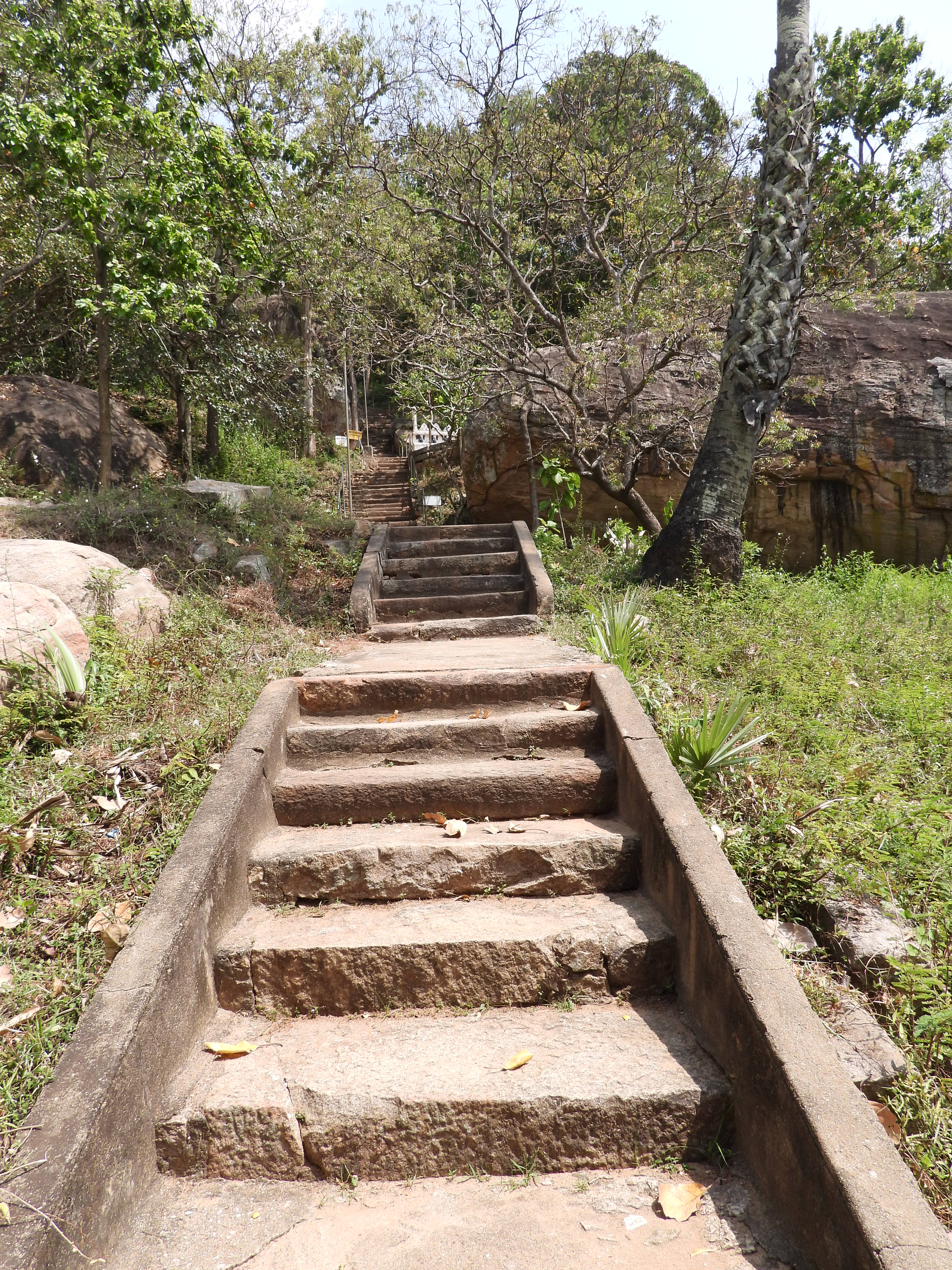 The large stairways leading to the top of the rock where you find further ruins of temple buildings also provides a breath taking panoramic view of the area right upto the east coast.